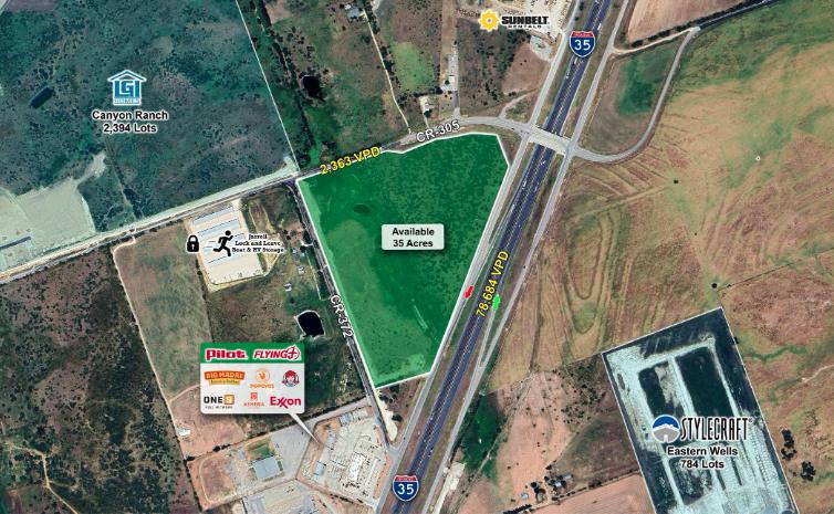 • I-35 frontage (±1,700’) with direct off-ramp access on the AM commuter side